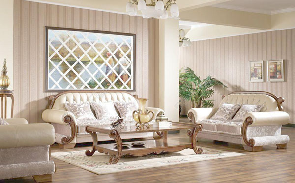 其次,欧式家具选购中还可选购一些较有特色的墙纸,如有圣经故事以及人物的图画、条纹或是碎花颇有典型的欧式风格墙纸。欧式家具选购中亦可选购一些比较厚重的画框、描金、雕花与之匹配。