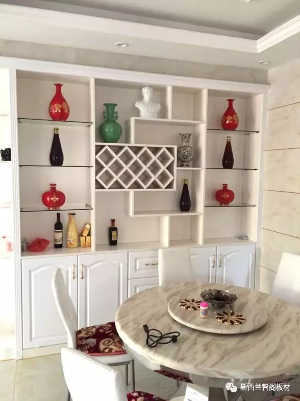 6、贺扩军(贺师傅设计制作的中式家具搭配在一派田园风的沙发座椅里,毫无违和感,时尚混搭、别具一格。柜子细节自不必说,整体设计非常棒,板材花色古典雅致。)