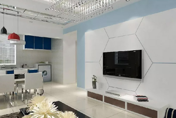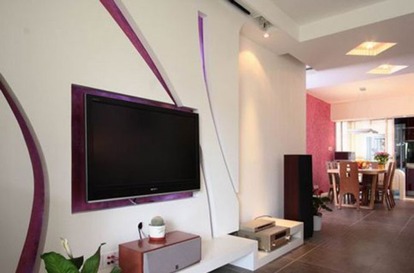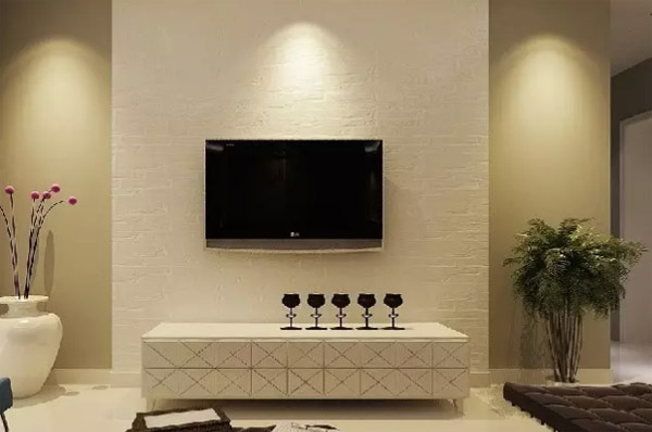 4、电视墙一般与顶面的局部吊顶相呼应,吊顶上一般都有灯,所以要考虑墙面造型与灯光相呼应,照明灯的颜色和强度也应该留意,不要运用瓦数过大或颜色太耀眼的灯泡,这样在观影时才不会有双眼刺痛或眩晕的感觉。