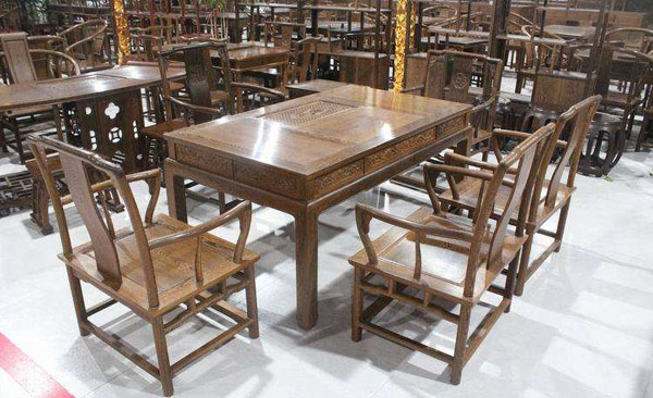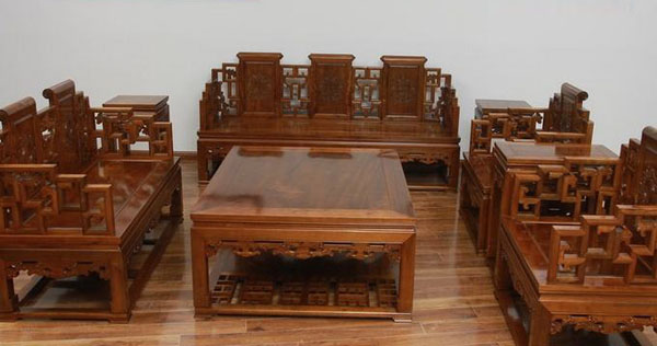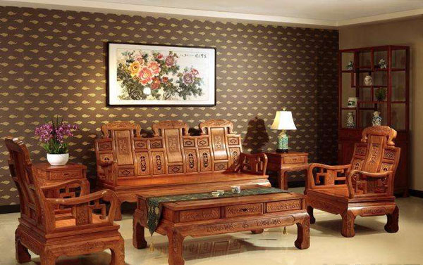 2、花梨木:紫檀类,豆科蝶形花亚科紫檀属中具优质深色心材的珍贵树种。花梨木心材边材区别明显,边材黄白色至灰褐色;心材红褐色、紫红色至紫褐色;材色较均匀,可见深色条纹,生长轮不明显或略明显。散孔材或半环孔材,单管孔,少数径列复管孔,内含深色树胶、沉积物或侵填体。轴向薄壁组织翼状、聚翼状、带状、环管束状和轮界状。木射线以单列为主,径面斑纹不明显或略明显,弦面具波痕,有光泽,具轻微或显著清香气,纹理交错,结构细而匀,多半出现在明式家具上,木质致密,颜色从浅黄到暗棕。一般黄花梨家具使用越久,色泽反而越光亮,更适用于现代空间。