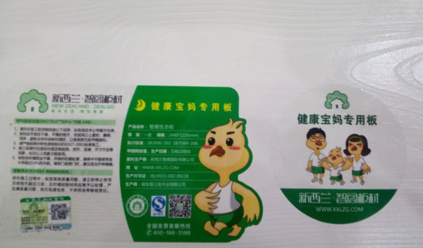 首先,每张新西兰智阁的板材上面都会有一张防伪标签,见下图。