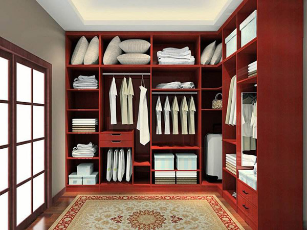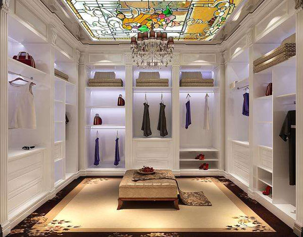 三、收纳功能强;衣帽间的壁柜不要采用开放形式,所有的衣服都暴露在外面,很轻易杂乱无章,一片散乱。因此,在设计时分割要公道,在隔板之前,充分利用主人所放物体的尺寸大小,包括长、体与重量等。