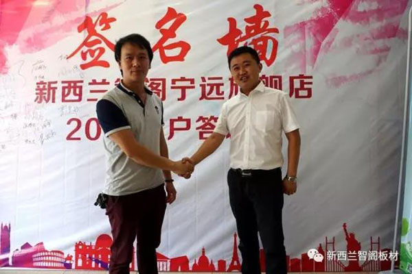 ▲新西兰智阁宁远旗舰店张总(左)与新西兰智阁品牌国内营销中心总经理龙总(右)握手