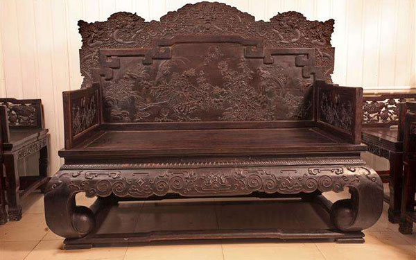 2、花梨木:紫檀类,豆科蝶形花亚科紫檀属中具优质深色心材的珍贵树种。花梨木心材边材区别明显,边材黄白色至灰褐色;心材红褐色、紫红色至紫褐色;材色较均匀,可见深色条纹,生长轮不明显或略明显。散孔材或半环孔材,单管孔,少数径列复管孔,内含深色树胶、沉积物或侵填体。轴向薄壁组织翼状、聚翼状、带状、环管束状和轮界状。木射线以单列为主,径面斑纹不明显或略明显,弦面具波痕,有光泽,具轻微或显著清香气,纹理交错,结构细而匀,多半出现在明式家具上,木质致密,颜色从浅黄到暗棕。一般黄花梨家具使用越久,色泽反而越光亮,更适用于现代空间。